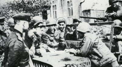 George Goldberg became a suspect after Boris Belitsky, a top Radio Moscow correspondent whom he recruited for the CIA, turned out to be a double agent for the KGB. Innocent, but unaware that he had become a target of the mole hunters, Goldberg was puzzled that the CIA did not promote him. Goldberg, captured by the Nazis during World War II, was liberated by Soviet troops and pressed into service as their interpreter when the Russians and Americans linked up at the Elbe River in 1945. Goldberg, center, is the man in the wool cap.