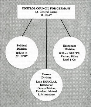 May 29, 1945 Lieutenant-General Lucius D. Clay, as Deputy to General Eisenhower, actively runs the American element of the Control Council for Germany. General Clay's three principal advisers on the Control Council staff are. 1. Ambassador Robert D. Murphy, who is in charge of the Political Division. 2. Louis Douglas, whom General Clay describes as my personal adviser on economical, financial and governmental matters." Douglas resigned as Director of the Budget in 1934; and for the following eight years he attacked the government's fiscal policies. Since 1940, Douglas has been president of the Mutual Life Insurance Company, and since December 1944, he has been a director of the General Motors Corporation. 3. Brigadier-General William Draper, who is the director of the Economics Division of the Control Council. General Draper is a partner of the banking firm of Dillon, Read and Company, Sunday's New York Times contained the announcement of key personnel who have been appointed by General Clay and General Draper to the Economic Division of the Control Council. The appointments include the following: 1. R.J. Wysor is to be in charge of the metallurgical matters. Wysor was president of the Republic Steel Corporation from 1937 until a recent date, and prior thereto, he was associated with the Bethlehem Steel, Jones and Laughlin Steel Corporation and the Republic Steel Corporation. 2. Edward X. Zdunke is to supervise the engineering section. Prior to the war, Mr. Zdunke was head of General Motors at Antwerp. 3. Philip Gaethke is to be in charge of mining operations. Gaethke was formerly connected with Anaconda Copper and was manager of its smelters and mines in Upper Silesia before the war.