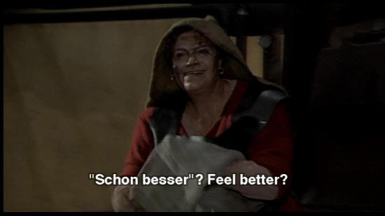 A bucket of water and I'm all white. Like a slice of bread. "Schon besser?" Feel better? Let's go then. Move, young fella. SNAPORAZ: Who'll ever believe this? If that bitch up there hadn't ... What time is it? Who knows? Listen ... SHE VULCAN: "And with his dipper He skimmed the pot.