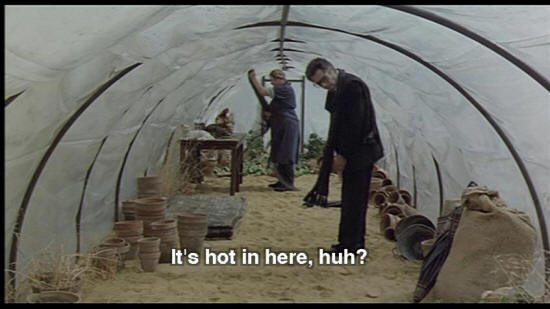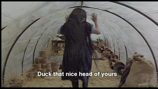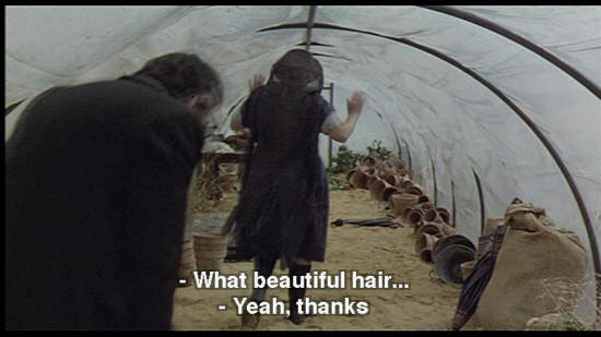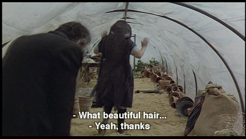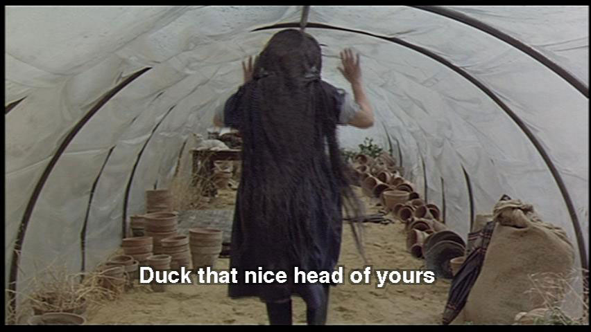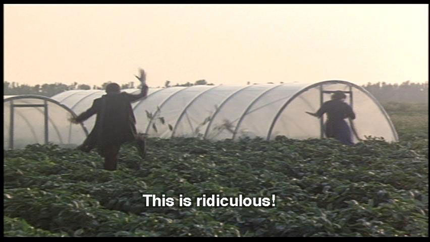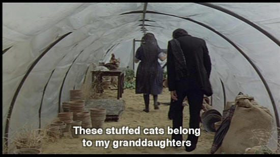 SNAPORAZ: This is ridiculous! SHE VULCAN: "Come, come, we'll gather seeds for all our needs." It'll only take a second. Duck that nice head of yours. What beautiful hair ... SNAPORAZ: Yeah, thanks. SHE VULCAN: These stuffed cats belong to my granddaughters. It's hot in here, huh?