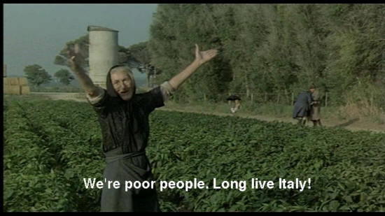 OLD WOMAN: I'll fix her! Sweetie ... Accompany the gentleman. To the train station. And make sure you take the River Road. Forgive us. We're poor people. Long live Italy! SNAPORAZ: Yeah, long live.