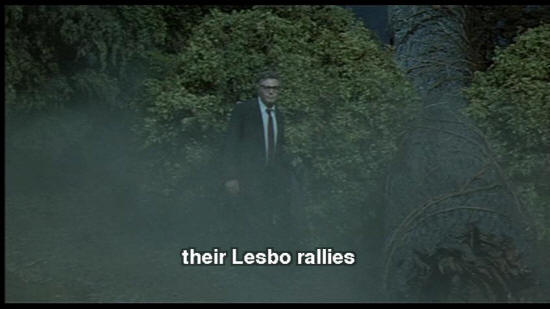 Only good for scaring them. It's three nights they keep me awake ... with their shouting ... their sit-ins ... their Lesbo rallies. Although I'm busy with other matters at night! But just knowing that they're ...
