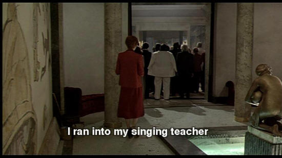 Thanks for showing me how! SNAPORAZ: Let's go away. ELENA: I get depressed at home. I ran into my singing teacher. WOMAN: Excuse me, sir, but I'm talking to my psychoanalyst. SNAPORAZ: Go right ahead, I'm not ...