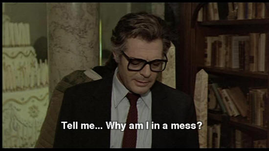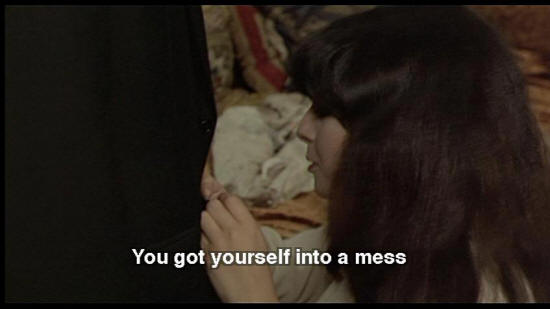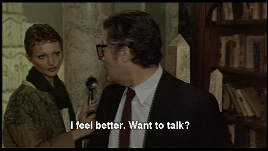 SNAPORAZ: Why do you come here? DONATELLA: That's a secret. You got yourself into a mess. WOMAN: I feel better. Want to talk? SNAPORAZ: No, thanks anyway. Tell me ... Why am I in a mess?