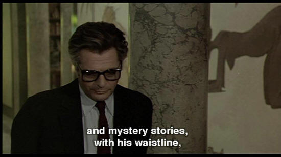 and mystery stories, with his waistline ... his homeopathic cures, acupuncture ... Maybe a little puncture down there would do you good, huh? SNAPORAZ: How considerate you are. Listen, Elena, don't you ...