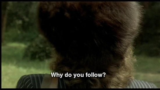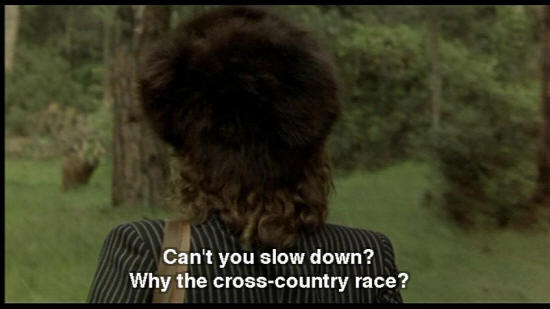 "playmates." We're alone: you and I ... Can't you slow down? Why the cross-country race? Stop. WOMAN ON TRAIN: Why do you follow? What if I were going to meet a man?