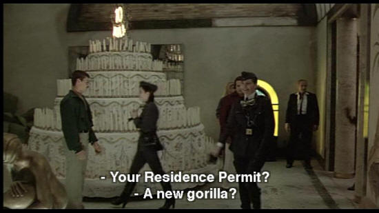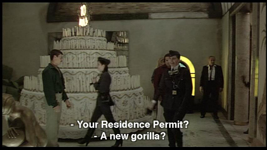 Wake up, Krisha. The police! POLICE: Your Residence Permit? POLICE: A new gorilla? DR. ZUBERKOCK: Though my heart brims with desire, I say ... Adieu! POLICE: Good evening, one and all! Dr. Zuberkock, my respects. Forgive me for interrupting like this ...