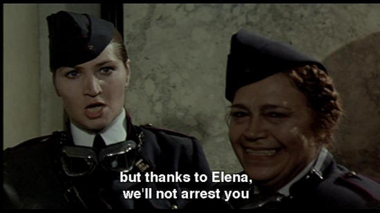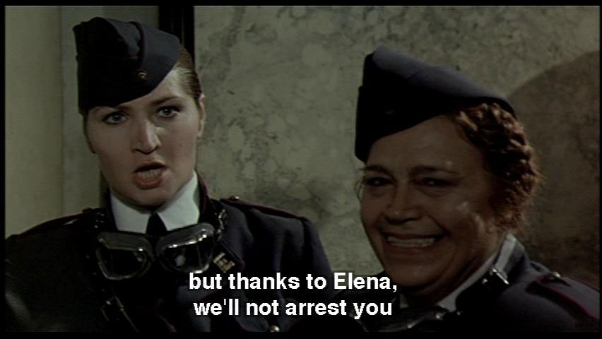 POLICE: You're guilty of mistreating minors ... but thanks to Elena, we'll not arrest you. SNAPORAZ: They were minors? I'm guilty of having mistreated poor little girls? POLICE: Yes, little girls!