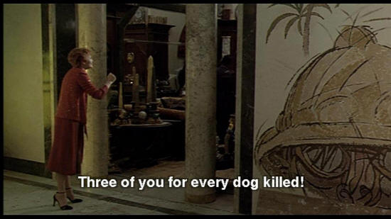 Our humble respects. SHE VULCAN: I'm sorry, but the Stationmaster is better than you. DR. ZUBERKOCK: They killed Italo! The dog I loved most. Whores! Murderers! Three of you for every dog killed! Italo ...