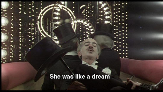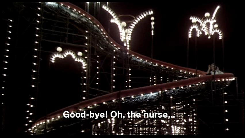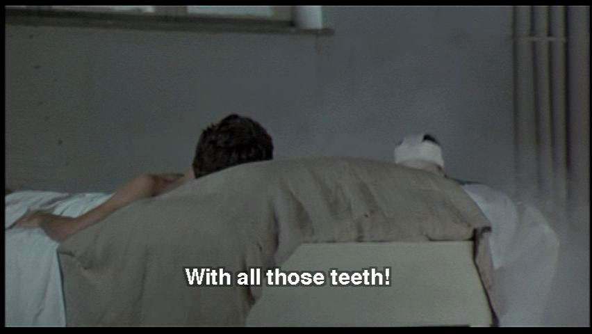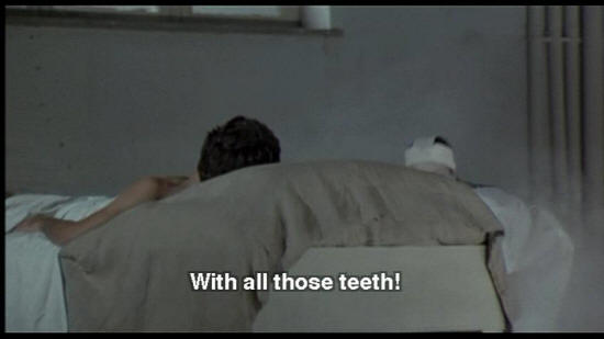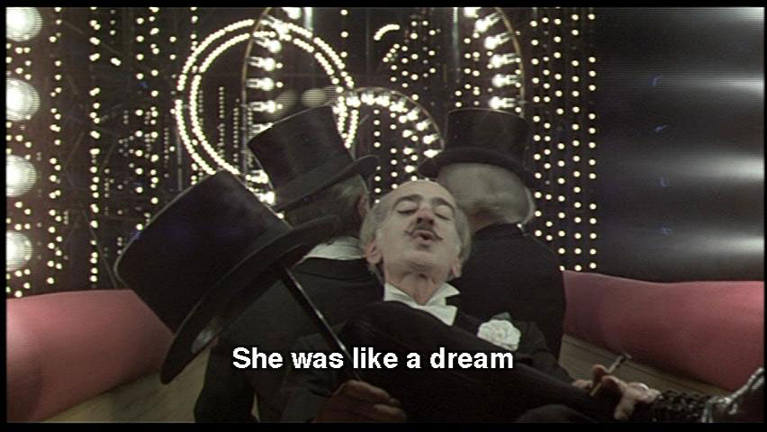 MEN: She was like a dream. In the dark, she was a shark! SNAPORAZ: Good-bye! Oh, the nurse ... from the health resort. Let me see the nurse. With all those teeth!