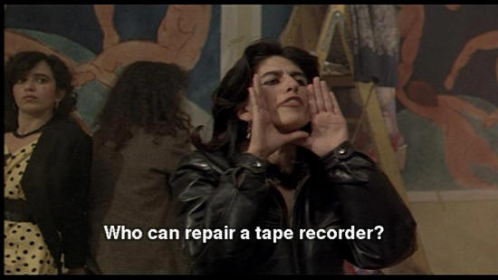 WOMAN: Who can repair a tape recorder?