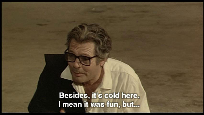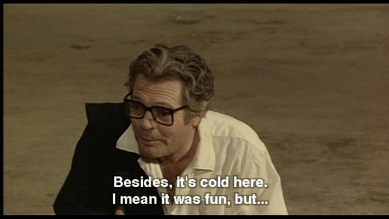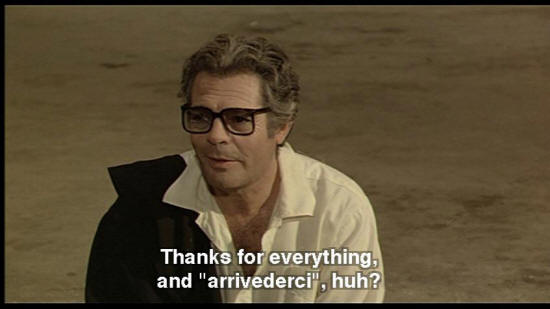 How can I answer you? I'm confused. Can't we end it here? Let's ... let's call it quits. Thanks for everything and "arrivederci," huh? Besides, it's cold here. I mean it was fun, but ... WOMAN: Hold your arm right out. Go on.