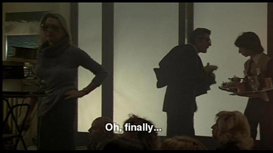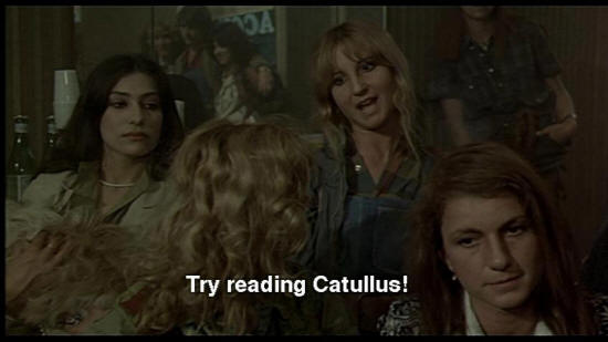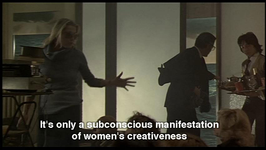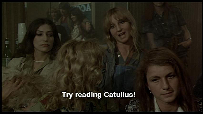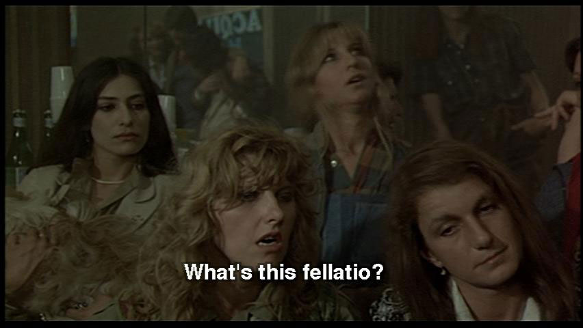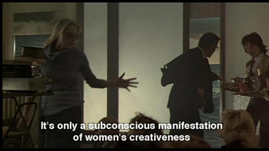 WOMAN: What's this fellatio? WOMAN: Try reading Catullus! WOMAN: It's only a subconscious manifestation of women's creativeness. SNAPORAZ: Oh, finally ... BOY: The kitchen's far off.