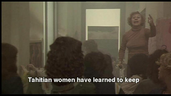 WOMAN: Tahitian women have learned to keep ... a turgid organ in their vagina for a whole night! A feat unknown to us! SNAPORAZ: Finally I see two smiling faces among so many scowling women.