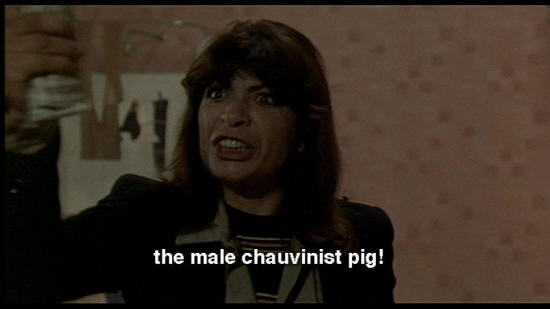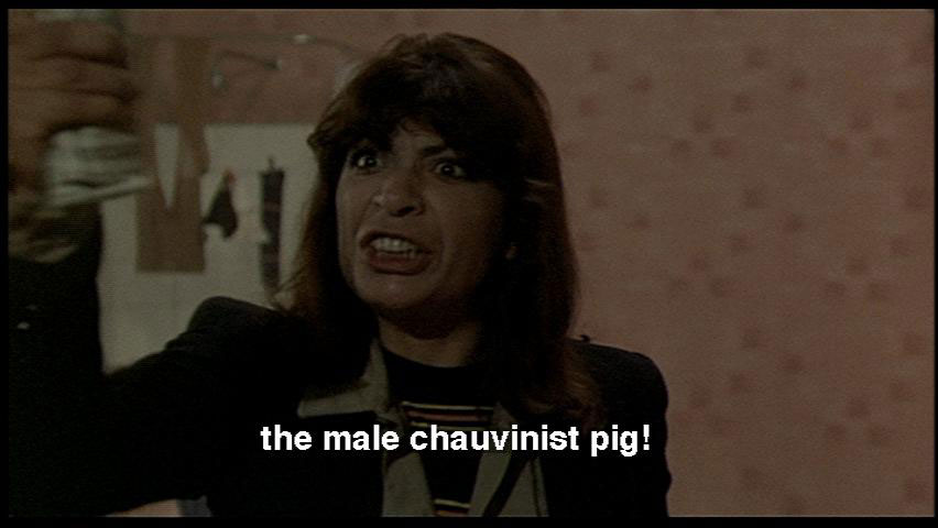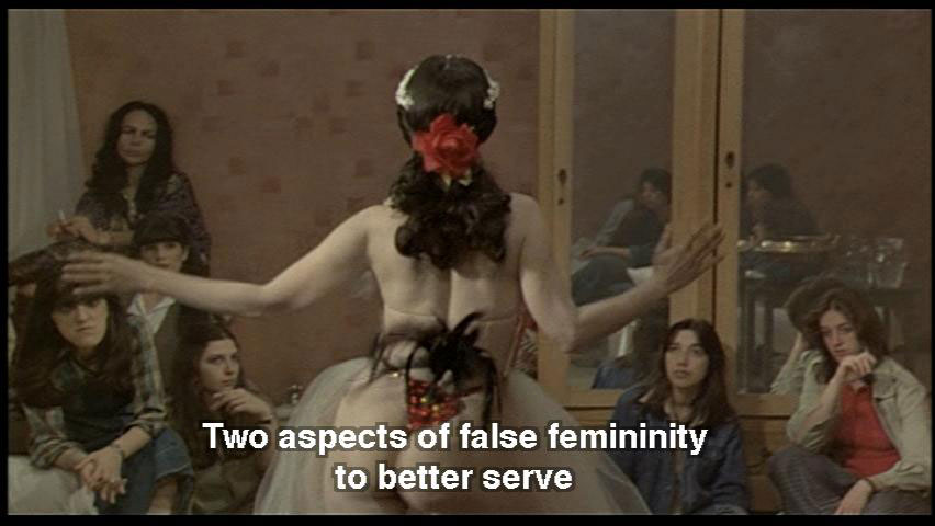 WOMAN: Virgin yet whore, angelic yet diabolical. Goddess of the hearth and instrument of pleasure Two aspects of false femininity to better serve ... the male chauvinist pig!