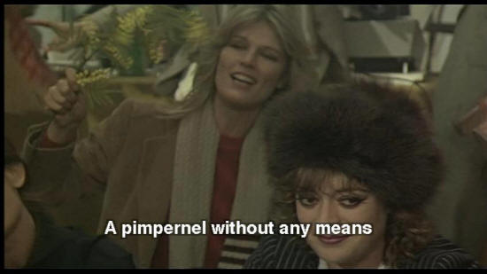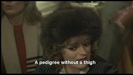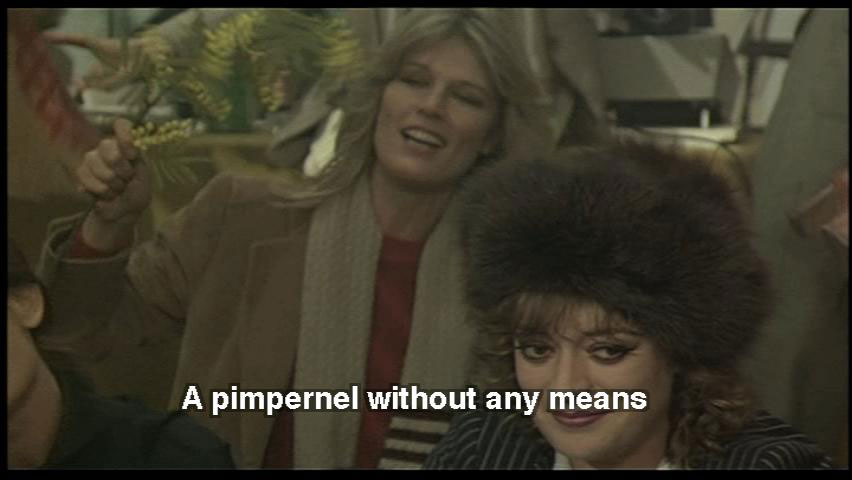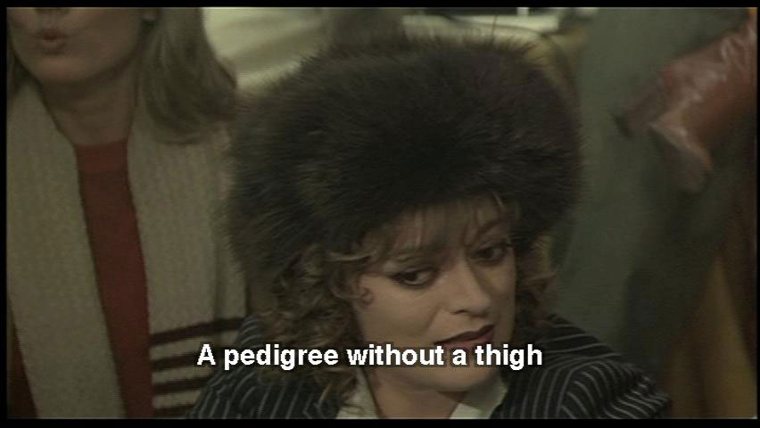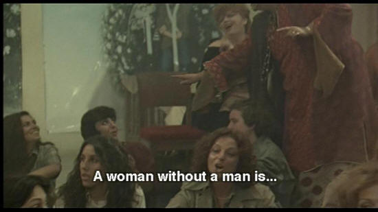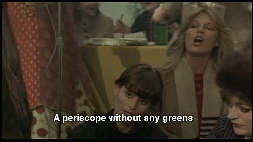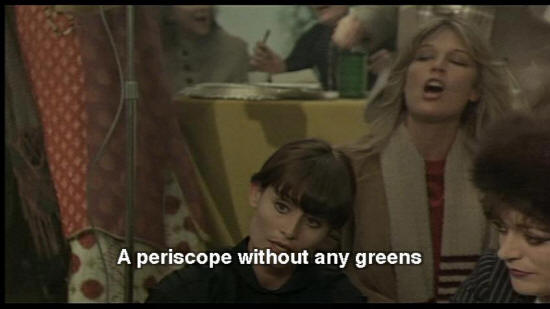 A woman without a man is ... A periscope without any greens. A pinnacle without a sigh. A pimpernel without any means. A pedigree without a thigh. WOMAN ON TRAIN: I'd like to say something ...