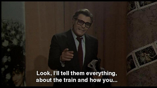Your number is up. SNAPORAZ: Look, I'll tell them everything, about the train and how you ... WOMAN ON THE TRAIN: Look sisters! In close-up! SNAPORAZ: Go to hell!