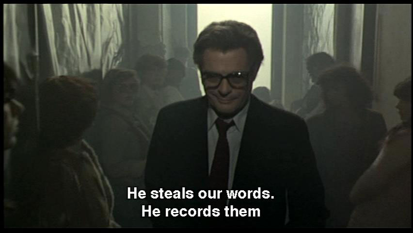 He steals our words. He records them ...