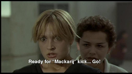 WOMAN: Ready for "Mackarij" kick ... Go!