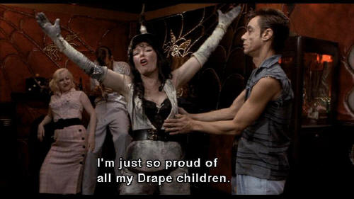 BELVEDERE: Come on. Come on, everybody. Come on in. Today's a special day for me and your grandmother. We've been together 10 whole years. [all whooping] RAMONA: I'm just so proud of all my Drape children. Oh, Wanda, you sure is pretty in them tight clothes |