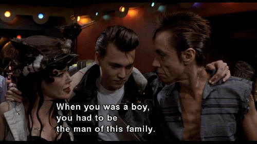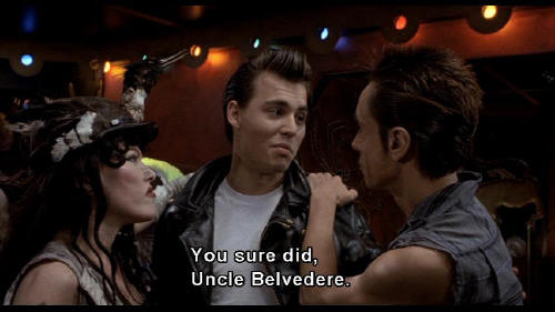 BELVEDERE: Cry-Baby. When you was a boy, you had to be the man of this family. But I taught you how to dress, didn't I? WADE: You sure did, Uncle Belvedere. RAMONA: Yeah, well, you're the future now, boy. You're the only future for this godforsaken family. |