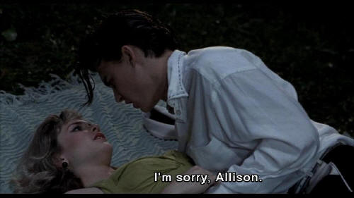 WADE: I'm sorry, Allison. It's just that you are so beautiful. ALLISON: I want to let you, but I can't. For my parents' sake. Cry-Baby, they're both dead. I'm an orphan. |