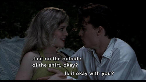 WADE: I'm sorry, Allison. No wonder we're together, honey. I'm an orphan, too. ALLISON: You are? WADE: Yes. And orphans have special needs. ALLISON: Just on the outside of the shirt, okay? WADE: Is it okay with you? |