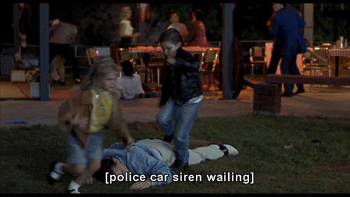 [police car siren wailing]