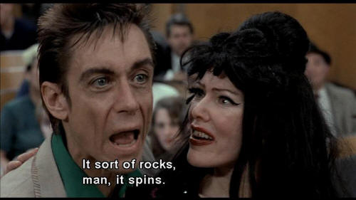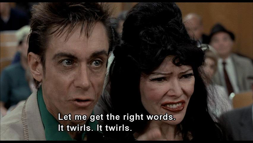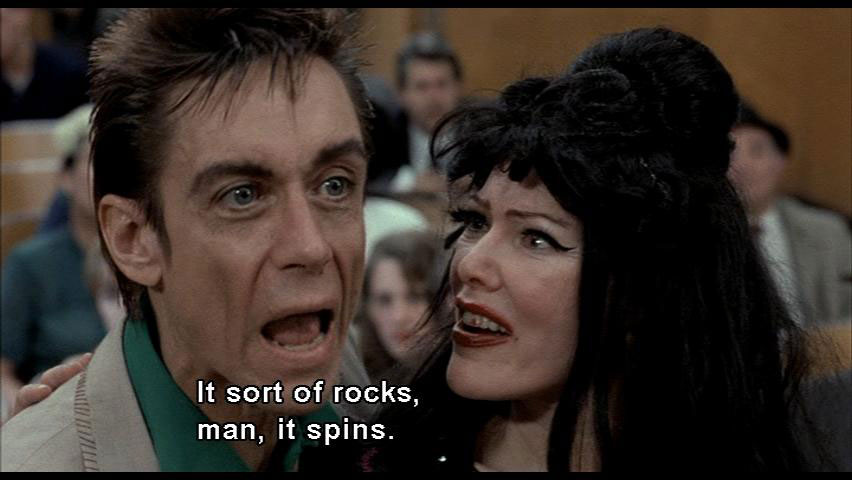 BELVEDERE: We don't know what to call it. It sort of rocks, man, it spins. Yeah. Let me get the right words. It twirls. It twirls. JUDGE: Ramona and Belvedere Rickettes, I find you guilty of disturbing the peace |