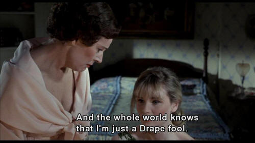 MRS. VERNON WILLIAMS: Hurry, Allison, hide. The newspapers have blown this completely out of proportionj. ALLISON: He lied to me, Grandmother. And the whole world knows that I'm just a Drape fool. |