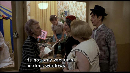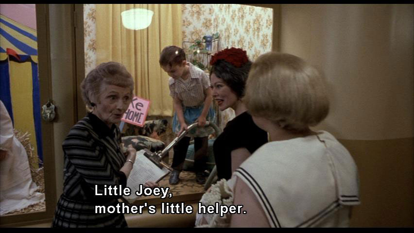 TAKE ME HOME MRS. TADLOCK: Little Joey, mother's little helper. He not only vacuums, he does windows. Irons. Yes. PEPPER: Here, these are the ones we want. BELVEDERE: A double-header! |