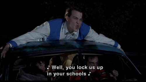 Well, you lock us up in your schools We weren't born to live by rules MRS. VERNON WILLIAMS: Get down from there this minute. BALDWIN: Sit down, you traitor. WADE: When you say stop, I say go, yeah, go! |