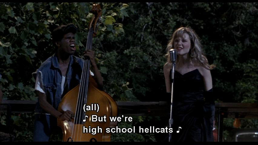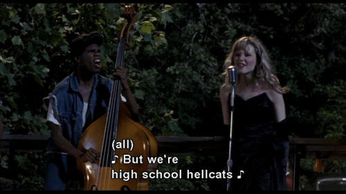 ALL: But we're high school hellcats And we never fit in We're high school hellcats MRS. VERNON WILLIAMS: Allison, help! Help me! Come on and pick a fight, we wish you would We love being bad 'cause it sure feels good We're high school hellcats |