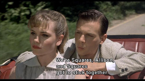 MRS. VERNON WILLIAMS: The prettiest and most talented girl in school and yet she socializes with Drapes. BALDWIN: We're Squares, Allison, and Squares got to stick together. |