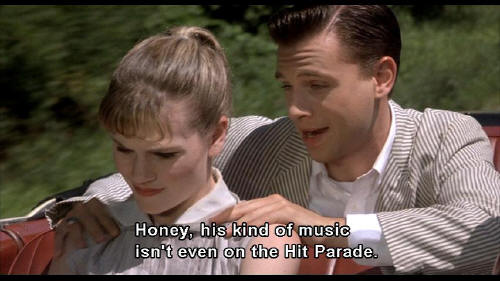 Honey, his kind of music isn't even on the Hit Parade.