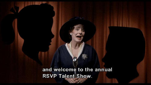 [microphone squeaks] MRS. VERNON WILLIAMS: Good afternoon, ladies and gentlemen and welcome to the annual RSVP Talent Show. AUDIENCE: Good afternoon, Mrs. Vernon-Williams. MRS. VERNON WILLIAMS: First, I must apologize for my frazzled nerves. |