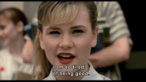 All the time IGGY POP [Song playing] Cryin' all the time RICKI LAKE TRACI LORDS STEPHEN MAILER DARREN E. BURROWS KIM MCGUIRE [Song playing] Oh, when a bad boy looks at me and POLLY BERGEN as Mrs. Vernon-Williams