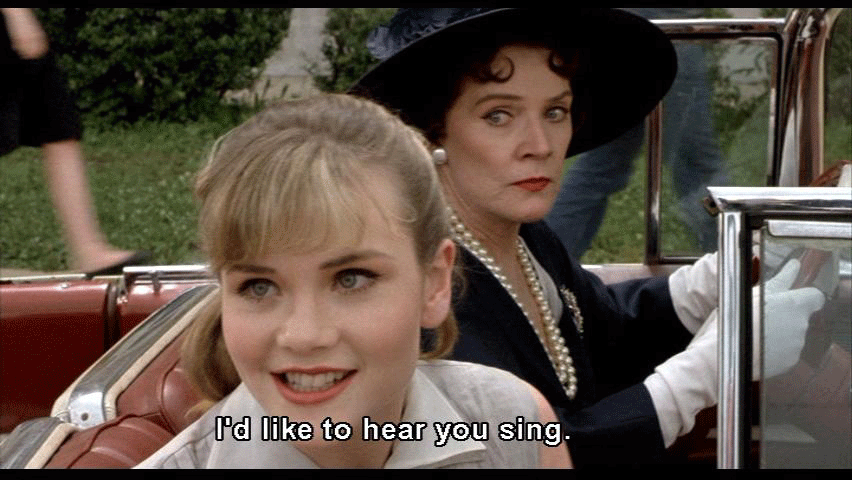 Mess around with me [MRS. VERNON WILLIAMS] You're too young to know the shameful truth [car horn honking] [Gee by The Crows playing] [Drapes