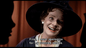 [music playing] [people chattering] [girls chattering] [microphone squeaks] [MRS. VERNON WILLIAMS] Good afternoon, ladies and gentlemen [AUDIENCE] Good afternoon, Mrs. Vernon-Williams. [MRS. VERNON WILLIAMS] First, I must apologize for my frazzled nerves. [ALL] [gasp] [MRS. VERNON WILLIAMS] It's all right. No one was injured. [WOMAN 1] I can't believe it. [WOMAN 2] How disgusting. [MRS. VERNON WILLIAMS] Girls who wear tight slacks. [ALL] [murmuring] [MRS. VERNON WILLIAMS]