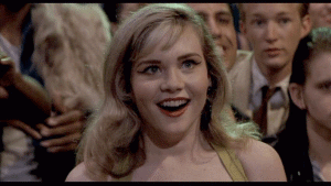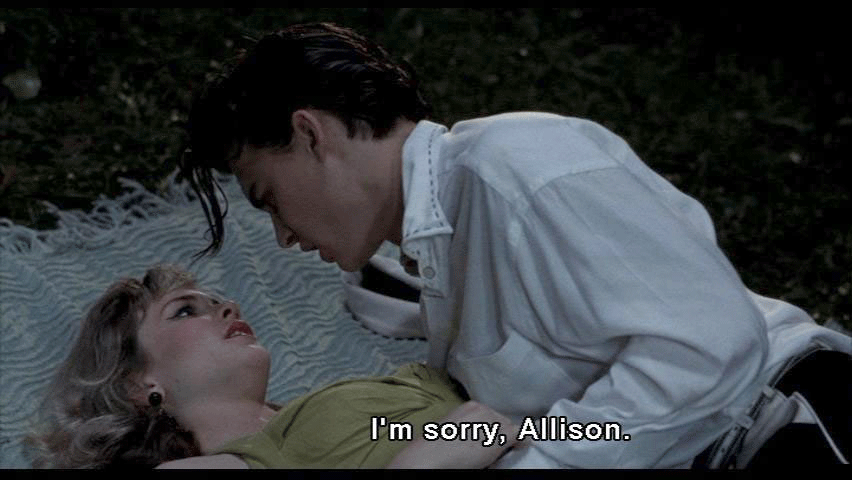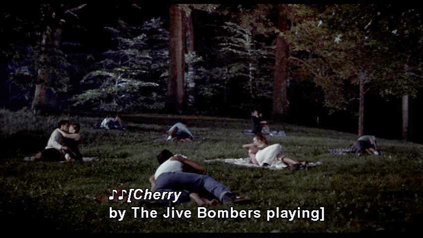 Cherry [WADE] Kiss me. Kiss me hard. [thunder clapping] [ALLISON] I've never given a French kiss before. [WADE] Watch. It's easy. and I open mine, And it feels real sexy. [ALLISON] I won't get mononucleosis, will I? [WADE] No, Allison. Just try it. *** [Song playing] I'll get you yet Someday, Cherry You'll be my pet Right now The day is set *** [DRAPES MUST DIE!] [I HATE DRAPES] [BOY] Break the window. [SQUARES] [laughing] *** [WADE] I'm sorry, Allison. [ALLISON] I want to let you, but I can't. For my parents' sake. [WADE] I'm sorry, Allison. I'm an orphan, too. [ALLISON] You are? [WADE] Yes. [ALLISON] Just on the outside of the shirt, okay? [WADE] Is it okay with you? [ALLISON] Yes. Oh, yes! Oh, my parents were, they were good people and they -- they loved me. [WADE] I want you. I need you. [ALLISON] They had to go on a business trip