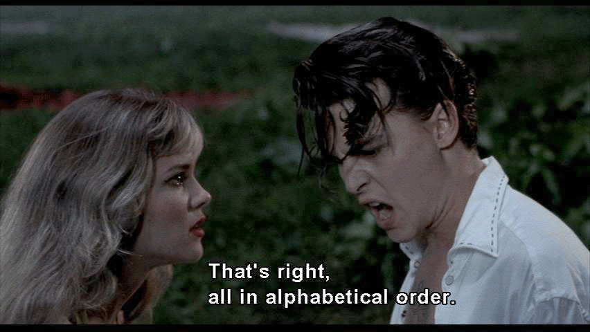 planes for safety, you know, [thunder cracking] [WADE] Goddamn! Lightning! [ALLISON] What's the matter, Cry-Baby? [WADE] Everything is the matter. [ALLISON] It's just a thunderstorm. Heat lightning. It's sexy. [WADE] It's not sexy. Electricity makes me insane. [ALLISON] Why, Cry-Baby? Why? [WADE] Here's why. Electricity killed my parents. [ALLISON] They died in the electric chair? [WADE] That's right, Allison. [ALLISON] God. I heard about the Alphabet