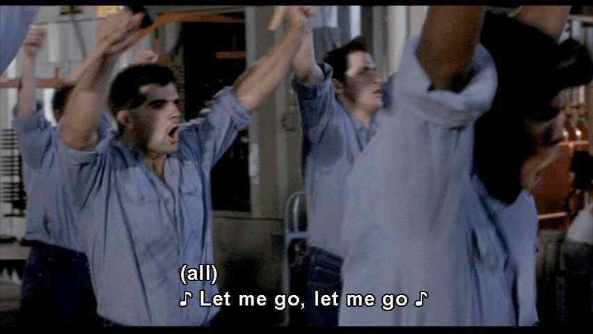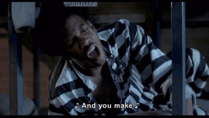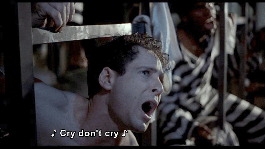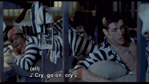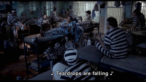 [singing] Teardrops are falling [ALL PRISONERS] [singing] Cry, go on, cry [WADE] [singing]
