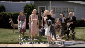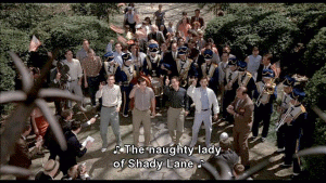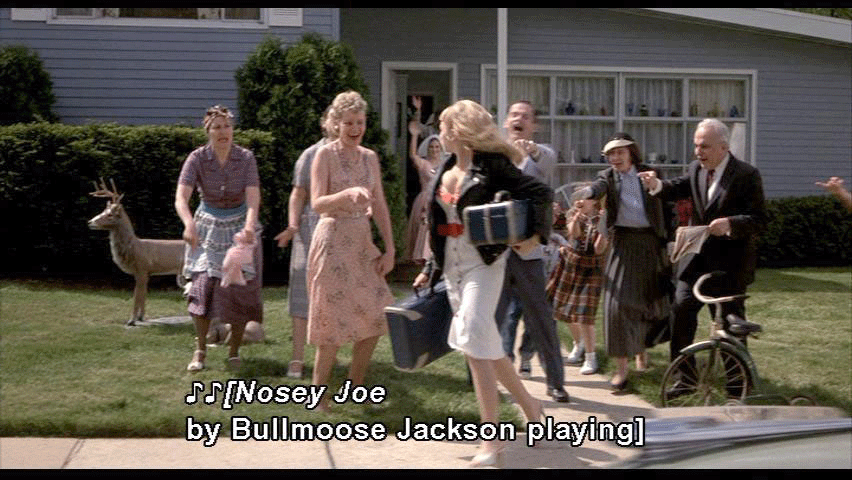 [scatting] The naughty lady of Shady Lane The back fence gossip ain't been this good Since Mabel ran off with Tom Our town was peaceful and quiet Disturbing the suburban routine [MRS. VERNON WILLIAMS] Allison Vernon-Williams, you don't have to decide