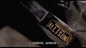 Jailbird, Jailbird; Go around stealing cars You'll end up behind iron bars Jailbird, Jailbird [DUPREE] Hey, man, your old lady's on the radio. There's trouble, Cry-Baby, big trouble. [WADE] Allison! *** [BALDWIN] There's a new place that's opening. It's called a theme park [ALLISON] I'd be proud to, Baldwin. Cry-Baby Walker, I hope you're happy with Lenora. I only have one thing to say to you. and I spit on your tears. [BALDWIN] I can sing better than Cry-Baby Walker *** [DUPREE] [switching stations] [WADE] [growling] [screaming] [singing]