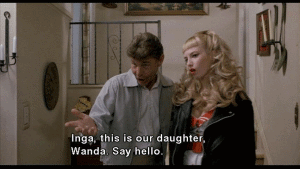 Well, I was out for a little fun [PRISONERS] [singing] Stuck in a cage with a teenage rage [WADE] [singing] I don't want to be doing time for being young [GUARD] [putting handcuffs on Wade] *** [people chattering] [I'm a Bad Bad Girl by Little Esther playing] I'm a bad girl [WANDA] Who the hell is this? [MAGGIE]: This is Inga. She's from Sweden. And she's going to be staying with us for a while. [HECTOR] Inga, this is our daughter, Wanda. Say hello. [INGA] Ya? [WANDA] [scoffs] I'm blowing this joint. [WANDA'S FATHER] Well, Inga doesn't understand English very well. [INGA] Ya? [MAGGIE]: Say hello to our daughter. [INGA] Ya? [HECTOR] Uh, h-honey, why don't you come over and sit down? Look at all the wonderful presents [MAGGIE]: Let's all put on a folk hat [HECTOR] Do we have a surprise for you. Don't we, Meg? [MAGGIE]: We sure do. Wanda, honey, you're going to Sweden, [WANDA] You mean you swapped me? For a milkmaid? [HECTOR] Oh, honey, Inga's mater and pater will treat you just like one of the family. Ya, Inga? [INGA] Ya. Ya, Ya. [WANDA] You want to learn about America, Inga? We like hot boys. [MAGGIE] Wanda honey, want some Ovaltine? [INGA] Ya. Ya, Ya. [WANDA] Yeah, I'm just a bebop baby. *** [people clamoring] [Nosey Joe by Bullmoose Jackson playing]