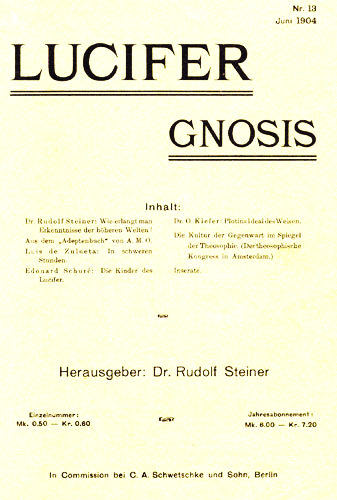 In Vienna, there also existed an Association for Occultism, connected to a person called Philipp Maschlufsky.[13] From 1903 he published a periodical called Die Gnosis, that was later absorbed by Rudolf Steiner's periodical Luzifer, and renamed Lucifer-Gnosis.[16] "It may have been a desire to counter Steiner's influence in the occult subculture which led Hartmann to encourage the publication of several new periodicals."[17] A Theosophical Publishing House was established by Hugo Vollrath in Leibzig in 1906. Among the magazines published there was Prana (1909–19), initially edited by Karl Brandler-Pracht and later edited by Johannes Balzli. Before that, a publisher with the name Wilhelm Friedrich had already published the works of Hartmann and Hübbe-Schleiden, as well as translations of the English theosophists at Leibzig.[18] Wilhelm Friedrich had also published the occult works of Max Ferdinand Sebaldt von Werth (1859–1916). Initially, this author had collaborated with Moritz von Egidy[19] on the periodical Das angewande Christentum (Apllied Christianity), but later he wrote volumes on "the sexual-religion of the Aryans", thus, in the opinion of Goodrick-Clarke, anticipating Ariososophy.[20] Anthroposophy