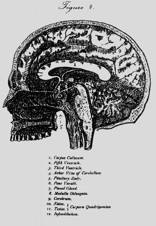Those among the students of the E.S. who are physicians, physiologists, anatomists, etc., will understand me better than the rest in the following explanation. Now, as to the functions of the Pineal Gland, or Conarium, and of the Pituitary Body, we find no explanations vouchsafed by the standard authorities. Indeed, on looking through the works of the greatest specialists, it is curious to observe how much confused ignorance on the human vital economy, physiological as well as psychological, is openly confessed. The following is all that can be gleaned from the authorities upon these two important organs. (1) The Pineal Gland, or Conarium, is a rounded, oblong body, from three to four lines long, of a deep reddish grey, connected with the posterior part of the third ventricle of the brain. It is attached at its base by two thin medullary cords, which diverge forward to the Optic Thalami. Remember that the latter are found by the best physiologists to be the organs of reception and condensation of the most sensitive and sensorial incitations from the periphery of the body (according to Occultism, from the periphery of the Auric Egg, which is our point of communication with the higher, universal planes). We are further told that the "two bands of the Optic Thalami, which are inflected to meet each other, unite on the median line, where they become the two Peduncles of the Pineal Gland." 1. Corpus Callosum. (2) The Pituitary Body, or Hypophysis Cerebri, is a small and hard organ, about six lines broad, three long and three high. It is formed of an anterior bean-shaped, and of a posterior and more rounded lobe, which are uniformly united. Its component parts, we are told, are almost identical with those of the Pineal Gland; yet not the slightest connection can be traced between the two centres. To this, however, Occultists take exception; they know that there is a connection, and this even anatomically and physically. Dissectors, on the other hand, have to deal with corpses; and, as they themselves admit, brain-matter, of all tissues and organs, collapses and changes form the soonest -- in fact, a few minutes after death. When, then, the pulsating life which expanded the mass of the brain, filled all its cavities and energized all its organs, vanishes, the cerebral mass shrinks into a sort of pasty condition, and once open passages become closed. But the contraction and even interblending of parts in this process of shrinking, and the subsequent pasty state of the brain, do not imply that there is no connection between these two organs before death. In point of fact, as Professor Owen has shown, a connection as objective as a groove and tube, exist in the crania of the human foetus and of certain fishes. When a man is in his normal condition, an Adept can see the golden Aura pulsating in both the centres, like the pulsation of the heart, which never ceases throughout life. This motion, however, under the abnormal condition of effort to develop clairvoyant faculties, becomes intensified and the Aura takes on a stronger vibratory or swinging action. The arc of the pulsation of the Pituitary Body mounts upward, more and more, until, just as when the electric current strikes some solid object, the current finally strikes the Pineal Gland, and the dormant organ is awakened and set all glowing with the pure Auric Fire. This is the psycho-physiological illustration of two organs on the physical plane, which are, respectively, the concrete symbols of the metaphysical concepts called Manas and Buddhi. The latter, in order to become conscious on this plane, needs the more differentiated fire of Manas; but once the sixth sense has awakened the seventh, the light which radiates from this seventh sense illumines the fields of infinitude. For a brief space of time man becomes omniscient; the Past and the Future, Space and Time, disappear and become for him the Present. If an Adept, he will store the knowledge he thus gains, in his physical memory and nothing, save the crime of indulging in Black Magic, can obliterate the remembrance of it. If only a Chela, portions alone of the whole truth will impress themselves on his memory, and he will have to repeat the process for years, never allowing one speck of impurity to stain him mentally or physically, before he becomes a fully initiated Adept.