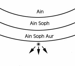 Why interlocking circles? Well, they are the product of a mathematical genesis. Let me explain. First there is the Nothing. The Ain, or Ain-Soph, the great limitless Nothingness of which nothing can be said. Then a point arises out of the Ain-Soph. God brings forth the immensity of eternal extension. With our limited human understanding we call this "non-existence". God withdraws himself from himself and creates an emptiness and a place for the Ain-Soph. The next thing is a circle. It encompasses the entire created emptiness. It is like the extension off the point. From this duality arises. There the point and the circle, the male and the female, the positive and the negative.