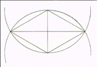 From one point, the center of the first circle, arises four points: the two centers of the two circles plus the two intersection points of the two circles. All four points can be connected to each other and produces the following result: From unity we went to duality to quaternity. The Four Elements are a quaternity as it is said that they are interrelated, they cannot exist without one another. They come forth out of unity and they dissolve into unity. The Four Elements are the foundation out of which the entire universe is built. The resulting diamond shape brings forth some interesting things: The diamond shape