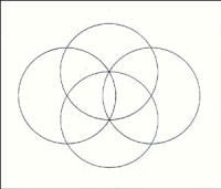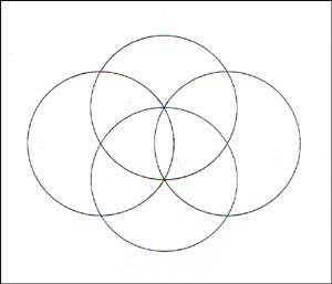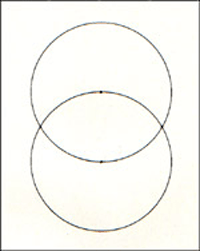 This simple act brings forth a lot of interesting things. The overlapping area is a "Vesica Pisces", a symbol used in early Christian days for Christ. The almost oval shape is also a universal symbol for the yoni, the female sexual organ used by many cultures for the Great Mother. It is well known in Eastern religions, but Mother Mary in the Catholic Church was also frequently depicted with the same symbol behind or around her.